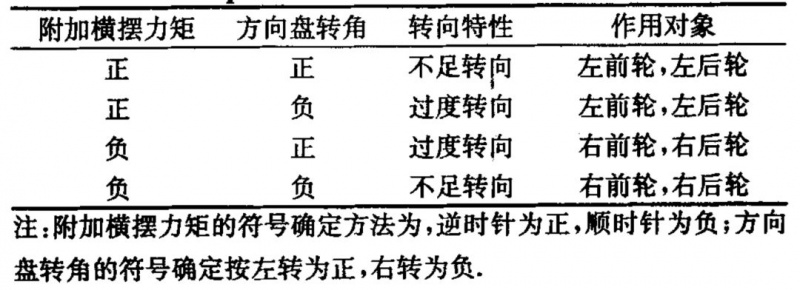 当车辆处于不足转向时,控制内后轮和内前轮产生制动力,得到正的附加横摆力矩使车辆回到稳定状态;