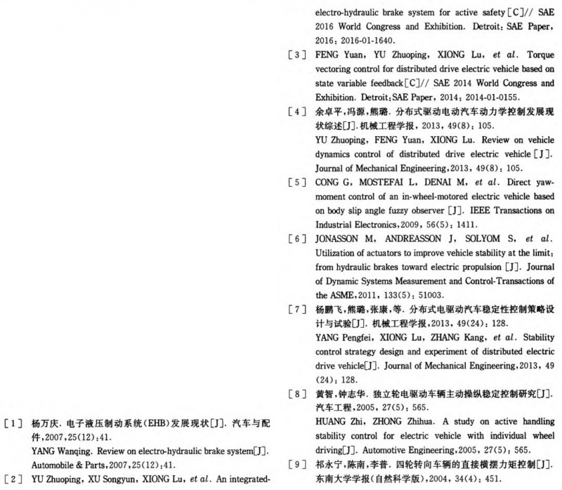 本文来自 2017 年 5 月出版的《 同济大学学报(自然科学版)》,作者是同济大学汽车学院与同济大学智能型新能源汽车协同创新中心的韩伟博士、熊璐教授、侯一萌和余卓平教授。