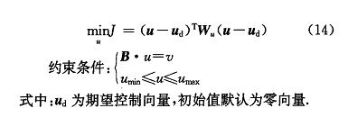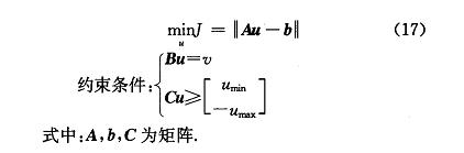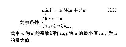 根据以上描述,在广义逆法基础上采用数学规划法中的二次规划法实现分配算法的具体计算。一般的二次规划可表述为: