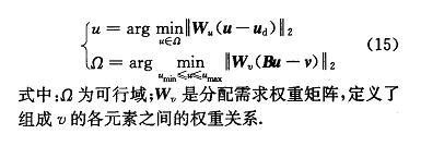 由式 (8) 可知,将等式约束 B·u = v 转化为 min lI B·u - v lI_2:,成为优化目标的一部分,则式 (14) 转化为 SLS 问题: