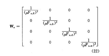 日本学者 Abe 等 [31-32] 提出以所有轮胎利用率平方和最小为目标函数分配广义力。目标函数如下式所示: