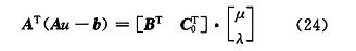 令 μ_0 为一满足式 (17) 约束条件的可行起始点,取为 4 行 1 列的零矩阵。W 是工作集,是一个 4 行 1 列的列向量。令 W 包含