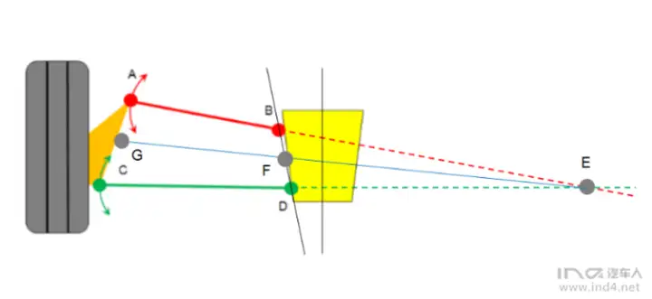 从悬架瞬心E 出发(关于瞬心可 参考悬架课程第二讲),连接一条线G-E 。