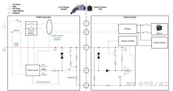 交流慢充:即传统的电池充电方式,又称常规充电。交流充电设备没有功率转换器,直接将交流电输出,接入车内。车载充电机接受到交流电后将其转换为直流电进行充电。因此交流慢充方案通过车量自带的便携式充电器即可接入家用电源或专用充电桩进行充电。